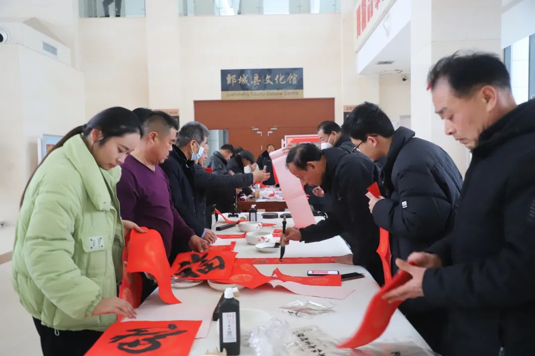 此次活動還特別設置了向群眾送春聯、送木板年畫暖心環節。鄄城書法家們揮毫潑墨,筆鋒游走間,一副副飽含美好祝福的春聯躍然紙上。