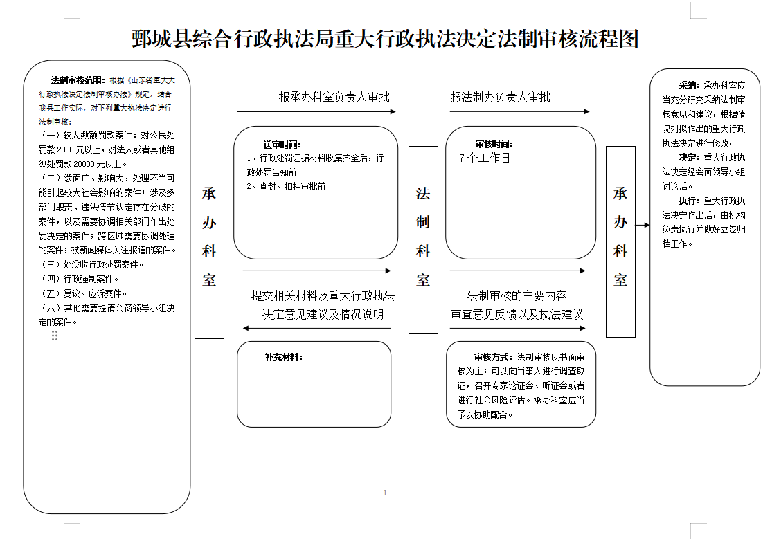 • 標  題:鄄城縣綜合行政執法局重大行政執法決定法制審核流程圖
